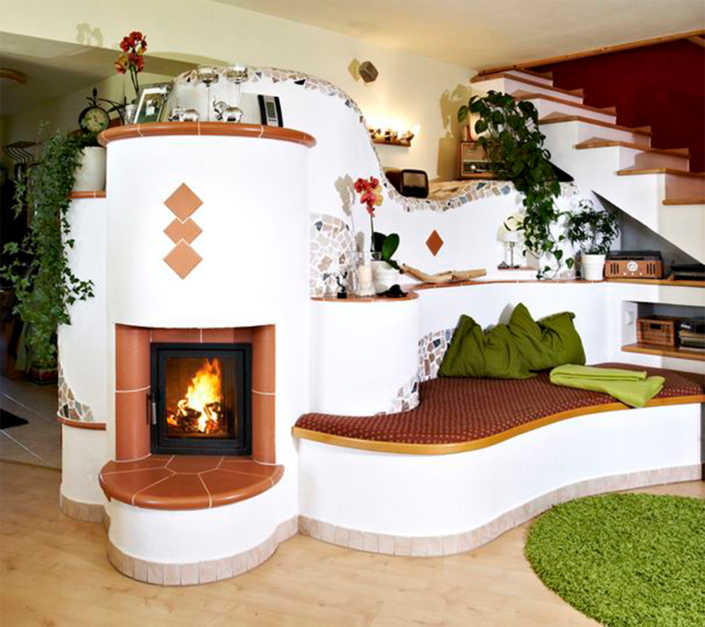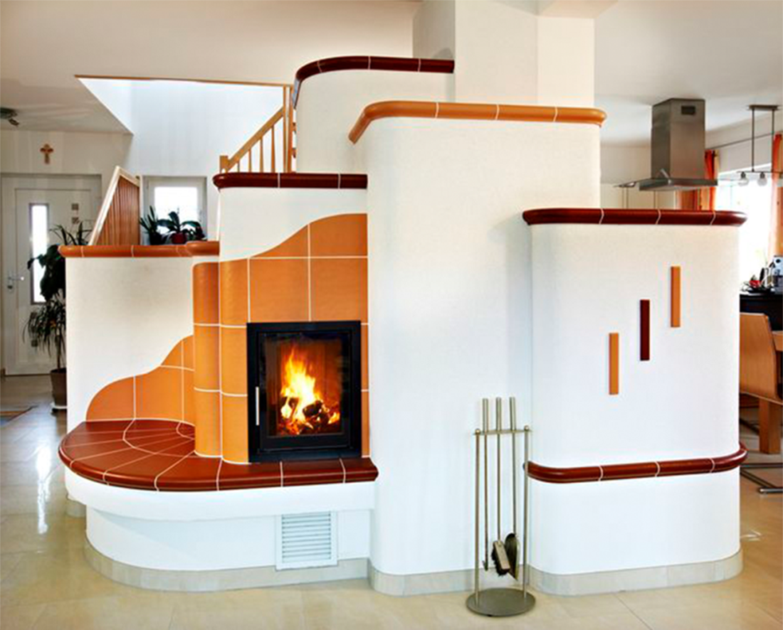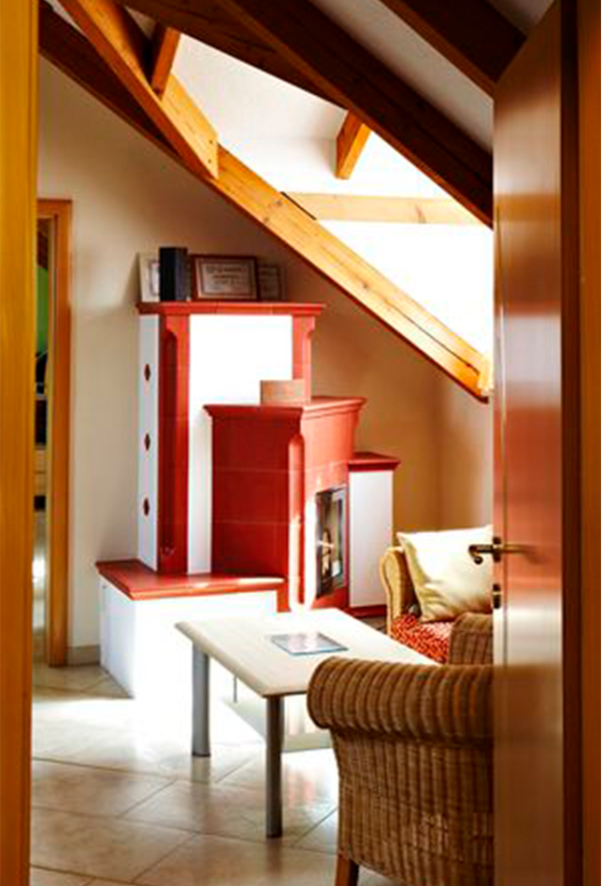 Die Feueranlage besteht aus hochwertigem Schamottematerial. Das bei der Verbrennung entstehende heiße Rauchgas wird durch keramische Züge geleitet, um möglichst viel Wärme zu entziehen und diese in der Keramik zu speichern. Die Wärme gelangt vom Schamottematerial langsam an die Kacheloberfläche und wird gleichmäßig an den Raum abgegeben. Der Anteil gesunder, angenehmer Strahlungswärme ist beim Grundofen besonders hoch.